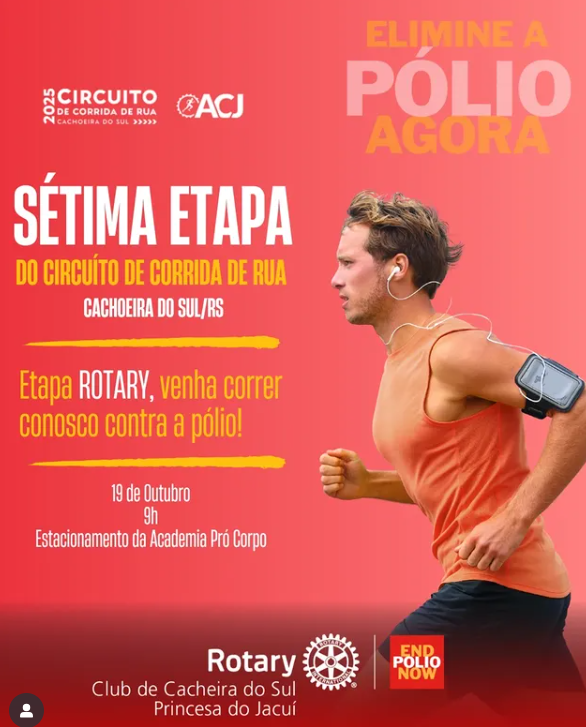 #RotaryPrincesaDoJacuí #EndPolioNow #RotaryClub #CachoeiraDoSul #CorridadeRua #ApoieEssaCausa #CircuitoDeCorridas #VacinaçãoSalvaVidas #Pólio #AcademiaProCorpo #acjcachoeiradosul