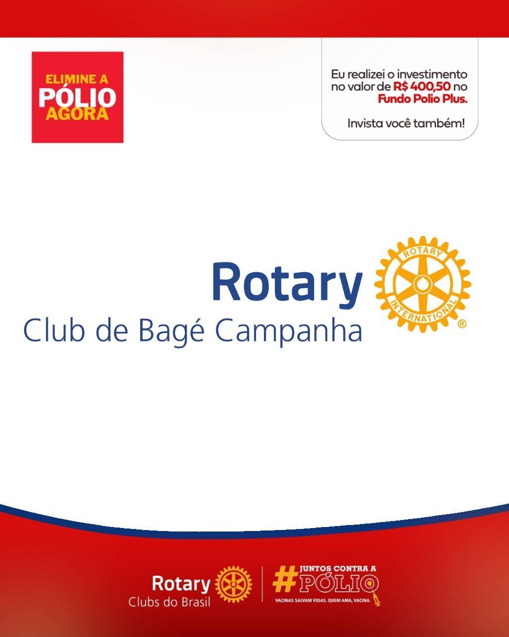 Sabendo a importância da Campanha Pólio Plus, Rotary Bagé Campanha realiza a sua contribuição, vamos juntos eliminar essa doença terrível. Juntos contra a Pólio