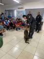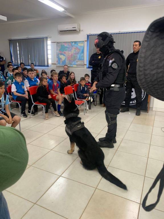 Foram convidados integrantes da Polícia Penal que apresentaram seus mascotes caninos, total de 5 cães de diferentes raças que demonstraram suas aprendizagens e serviços prestados junto às necessidades policiais, os instrutores cativaram as crianças, em torno de 60, com as histórias, envolvendo atenção, disciplina e resultado.
