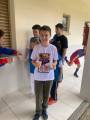 Após foi servido lanche, saborosos cachorro-quente, nêga maluca e suco; a seguir, foram convidados a conhecerem as dependências externas da escola onde o projeto Esporte e Educação é desenvolvido.