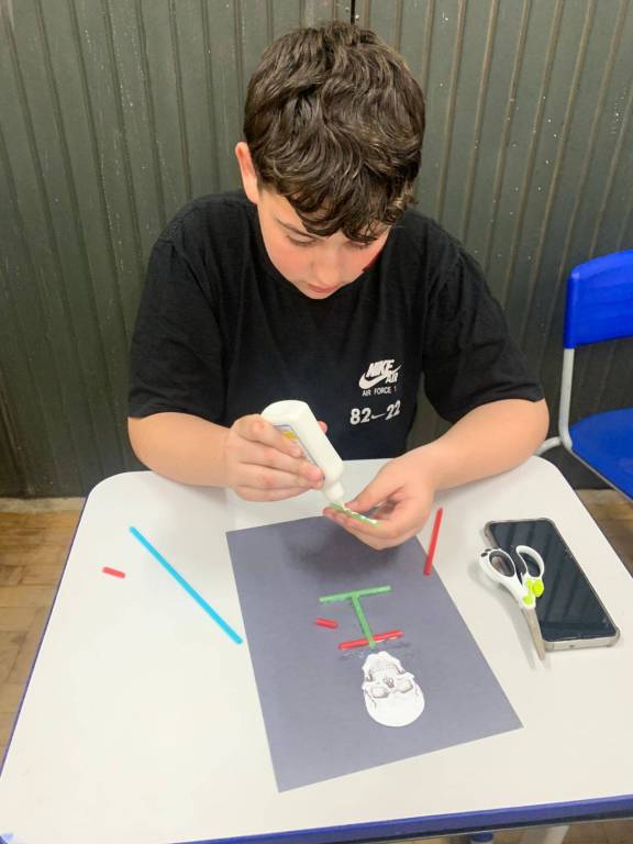 Fizeram uma atividade lúdica-educativa e enquanto trabalharam, receberam informações sobre o esqueleto humano. Após, confraternizaram e brincaram.