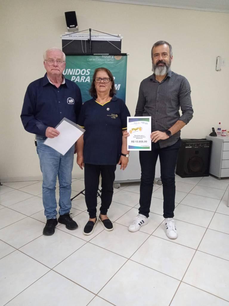 Em reunião ordinária do Rotary Club de Cachoeira do Sul Arrozais, do dia 11 de novembro , foi feita a divulgação oficial do resultado financeiro da 12 Oktoberfest do Clube e repassado os valores a cada instituição beneficiada , APAE de Cachoeira do Sul e Asilo Nossa Senhora Medianeira. As instituições irão usar os recursos para projetos de melhorias dos espaços e para pagamento de despesas de manutenção. O resultado final foi de R$ 34.039,23 onde a APAE recebeu R$ 11.274,00, 0 Asilo R$ 15. 958,00 e o restante vai para projeto do Rotary através da Fundação Rotária. A Presidente do Rotary Club Arrozais de Cachoeira do Sul Arrozais 2025-26, Vera Paixão, agradece a todos os parceiros e voluntários que ajudaram na realização deste grande evento beneficente. As instituições beneficiadas precisam de ações assim, para continuar atuando na comunidade e o Rotary Club de Cachoeira do Sul Arrozais está fazendo a sua parte, sempre unidos para fazer o bem.