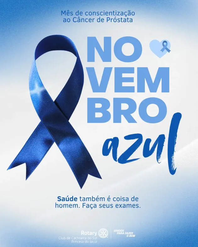 O Rotary Club Princesa do Jacuí, formado exclusivamente por homens, reforça neste mês a importância do cuidado com a saúde masculina. O Novembro Azul é uma campanha dedicada à prevenção e ao diagnóstico precoce do câncer de próstata, uma das doenças que mais afetam os homens no Brasil e no mundo.