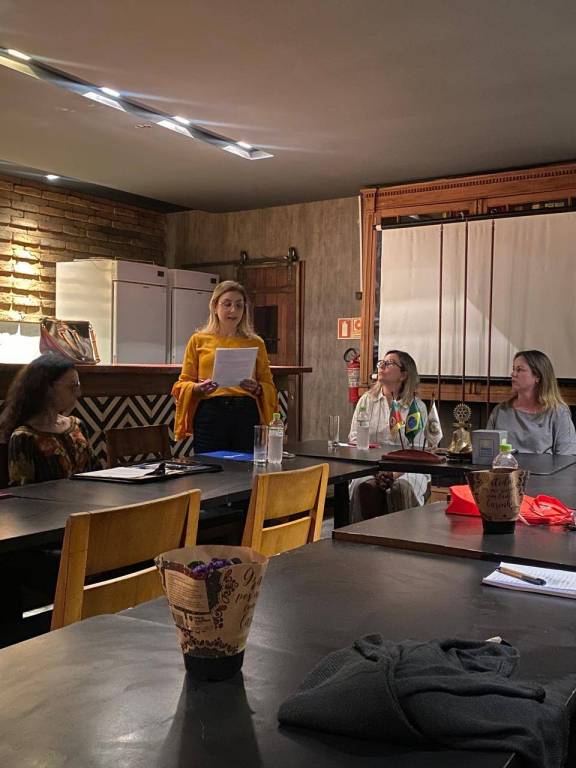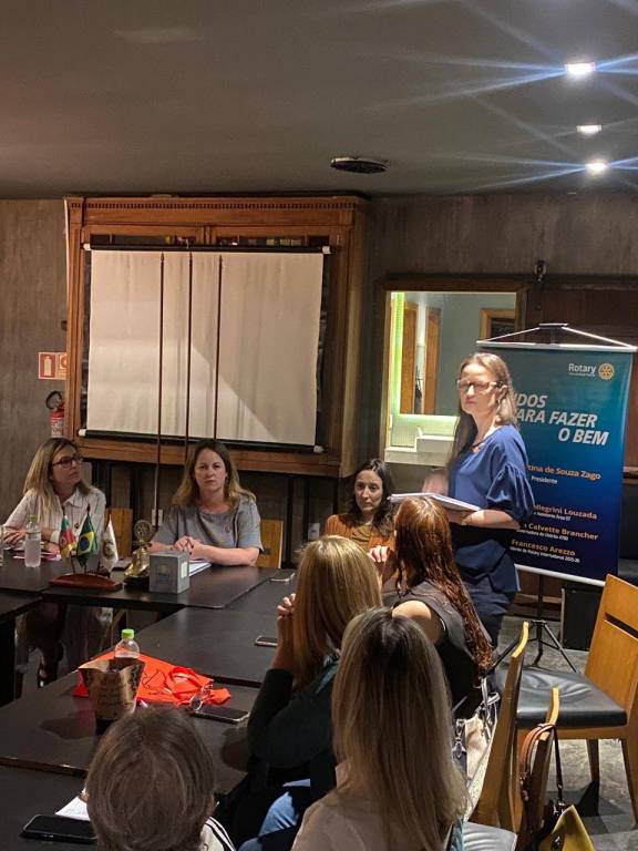 Tivemos a alegria de receber três convidadas muito especiais! A amiga Maria Luíza, que sempre nos prestigia quando está em Bagé, e também Renata Ritta e Janine Chaves, convidadas pelas companheiras Juliana Gimenez e Bárbara Coradini, que vieram conhecer de perto o Rotary Club de Bagé Pampa e o trabalho que realizamos em nossa comunidade. A noite contou com uma instrução rotária rica e inspiradora realizada pela companheira Larissa, que apresentou o funcionamento do Rotary International e destacou a importância da Prova Quádrupla, um guia ético que norteia as ações e decisões de todos os rotarianos ao redor do mundo, além de demonstrar o funcionamento do nosso clube. A companheira Siomara Mansur, da Comissão de Desenvolvimento do Quadro Associativo, recepcionou as visitantes entregando um mimo em nome do clube como forma de acolhida e gratidão pela presença. E para finalizar com muito carinho, a presidente realizou uma homenagem às professoras rotarianas, em alusão ao Dia do Professor. Foi uma noite marcada por acolhimento, aprendizado e reconhecimento, do jeito que o Pampa gosta!