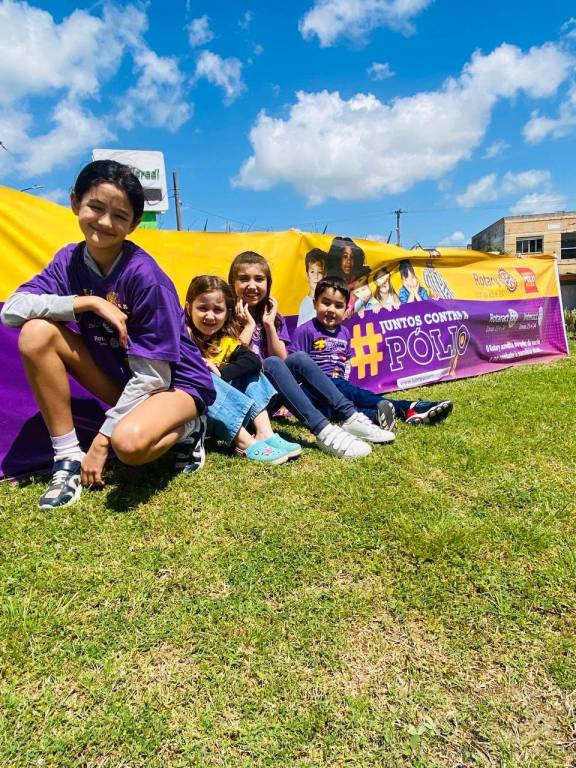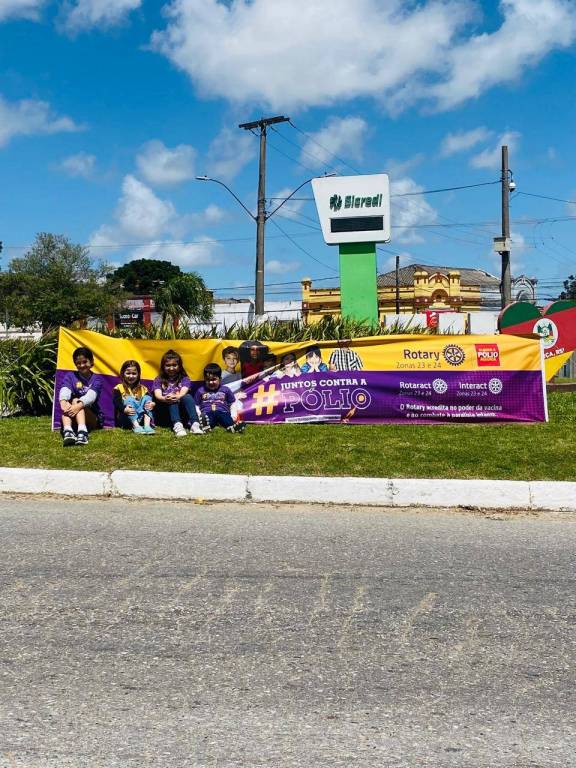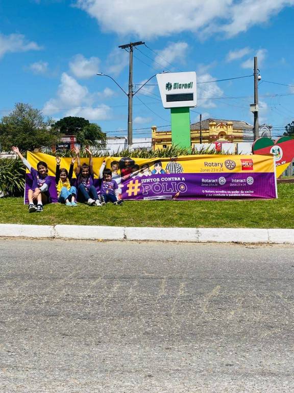Elimine a Pólio Agora. O Rotary Bagé Pampa faz campanha de conscientização com afixação de faixa na Santa Tecla